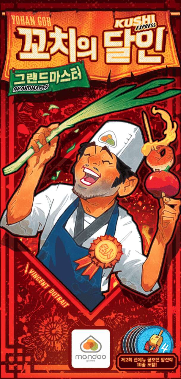 Grandmaster is an expansion for Kushi Express. It allows up to 6 players to enjoy the game together and introduces a new topping ingredient: leek. New skewer recipes featuring leek have been added, bringing more variety to the gameplay. After the main game, a tournament phase takes place to determine the ultimate Grandmaster. —description from the...