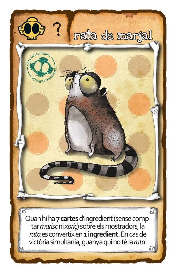 Also known as a water rat or irrigation rat. Did you know that in the past, paella was cooked with this animal? In the game, it is a treasure that will transform into an ingredient when there are 7 or more conventional ingredients on the displays. That is to say, at the beginning of the game, it won't be useful for anything, but at an unexpected moment, it...