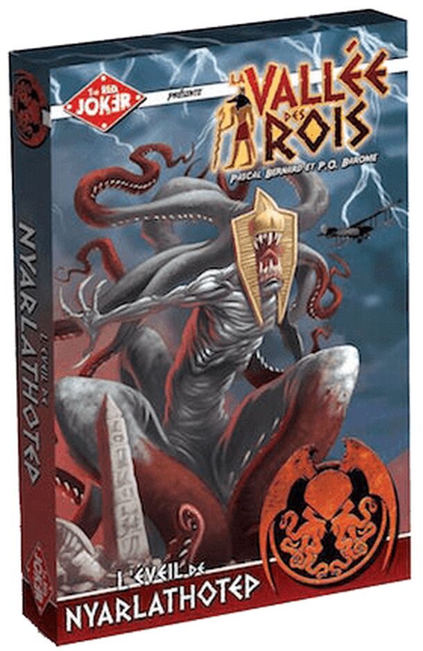 La Vallée des Rois: L'Éveil de Nyarlathotep is a 32-card expansion that transforms La Vallée des Rois into something of a different game as now one of the adventurers leads a cult and plans to use the treasures found in the tombs to carry out their evil plans, while the opponent tries to stop him with the help of a handful of scholars and courageous investigators.