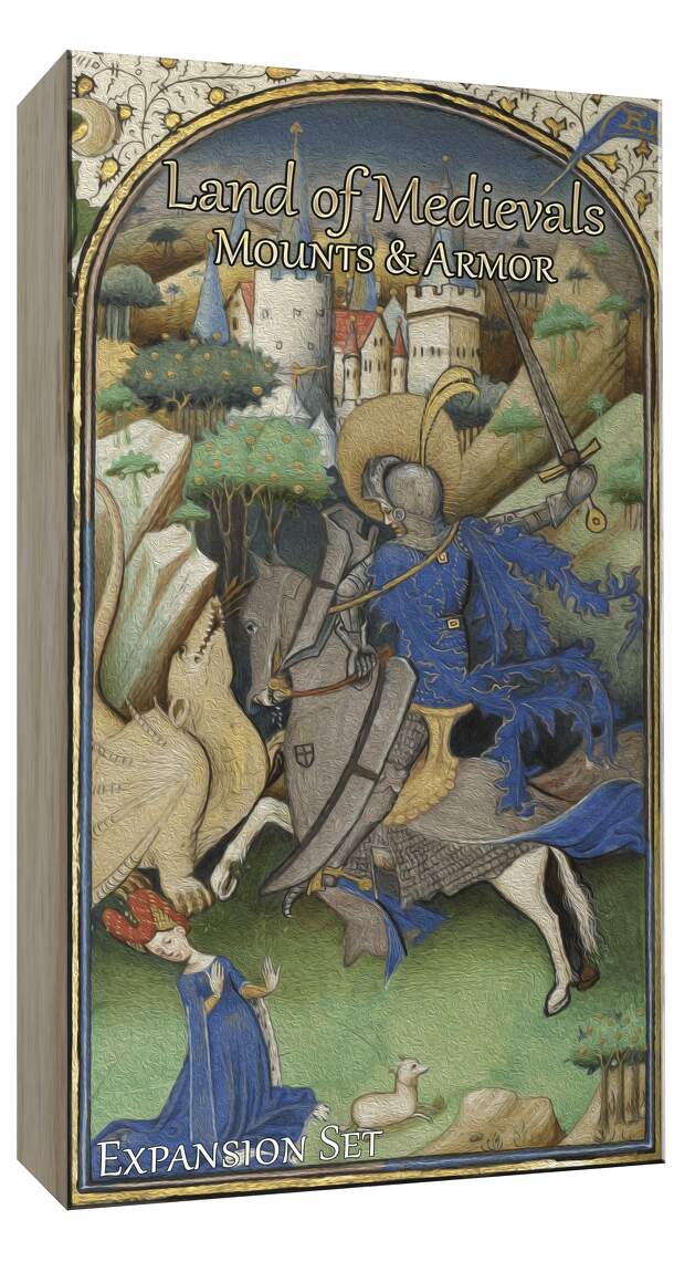 A Land of Medievals: Mounts & Armor egy nagyszerű kiegészítő a Land of Medievals társasjátékhoz, 2 - 4 játékos részére, az átlagos játékidő hosszabb, akár 1 - 2 óra is lehet. A társast, 14 éves kortól ajánljuk kipróbálni. A játékmenet erősen épít a kampány/harci kártya vezérelt, a kockadobás és a játékos kiiktatás mechanizmusokra.