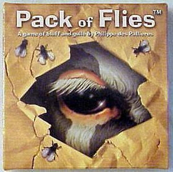 12 cards (with positive, negative, and special powers) are revealed one after the other. Each time a card is revealed, the players try to acquire it by secretly choosing a number of flies(each player starts with 5 black plastic flies), and guessing the total number of flies chosen by all of the players. The used flies become the reserve in the middle of...