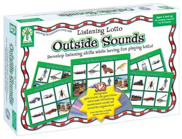 A Listening Lotto: Outside Sounds egy nagyszerű társasjáték, 1 - 12 játékos részére. A társas elsősorban gyerekeknek készült, akár már 4 éves kortól is játszható.