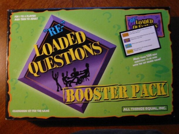 Re-Loaded Questions offers 128 new question cards to use in place of or alongside the standard Loaded Questions cards. There is no change to gameplay other than the opportunity for more questions.