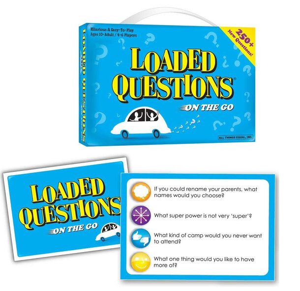 Loaded Questions can now be played on-the-go with more than 250 hilarious NEW questions, a custom answer/score pad and custom spinner in a convenient ‘suitcase’ box!