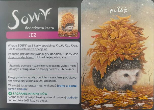 2 Hedgehog cards for Sowy. Hedgehog is the 4th special card type. The hedgehog offers an alternative place to place owl lands, other than the journey. Lands placed on the...