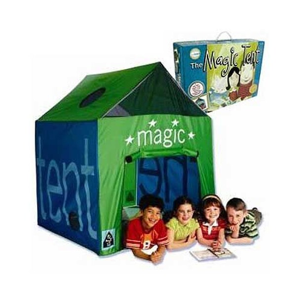 It's a story, a game, and an adventure! Hank, Stella and Cody were camping one night in their grandfather's mysterious tent. When they woke up the next morning, they were in another part of the world! Can you solve the mystery of the Magic Tent and bring them home? Young adventurers climb into the full-size, indoor play tent and begin reading the story. The story contains hints to finding clues that parents have hidden around the house. The mystery and clues are provided in the Mystery Treasure Hunt, Vol. 1 Alaska, which is included with this set. After reading each hint, the kids climb out of the tent and race to find the hidden clue. When they have collected all the clues, they'll fit them together to reveal a secret message. It's an active and imaginative game for groups or individuals. The high-quality tent makes a colorful, sturdy play structure. It stands nearly 5 feet tall and 4 feet across, with stay-open tabs and mesh ventilation panels. Made from sturdy, flame-retardant, 70 denier nylon. Comes with 48" x 58" Nylon Tent, 15 Tent Poles, Mystery Treasure Hunt and Illustrated Instructions. For 1 or More Players, Ages 7 and up.