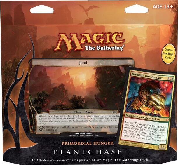Primordial Hunger is a red-green deck built around devour, from Shards of Alara. Planechase was originally released in 2009. This deck was released in 2012. Planechase is a card game and a variant of Magic: The Gathering with an emphasis on multi-player games. The set utilizes new oversized Plane cards, cards that are based on various locations (Planes)...