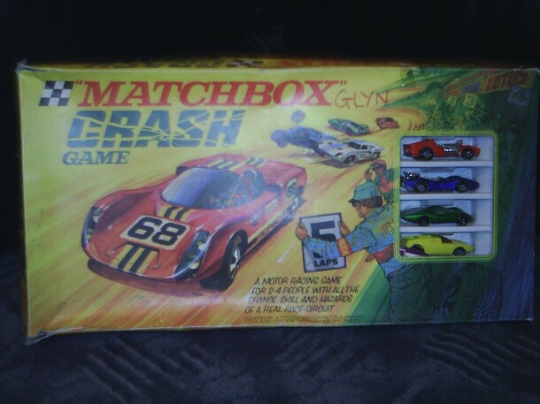 Crash is a fairly basic roll and move car racing game by Matchbox, a company better known for making model cars. It had two points of interest: the racing circuit was a figure of eight, and the playing pieces were actual metal model cars.
