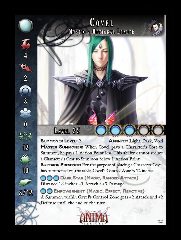 Covel Dhanyata is not only one of the greatest summoners in all of Gaia, he is also a link with the spirit of the Fallen Angel Jigoku no Kami. Sometimes mortal, sometimes the avatar of a god, this man travels the world imposing his divine will over every supernatural creature that crosses his path. Neutral Samael Optional Leader Mystic - Lv. 35 At 4 | Dm 2...