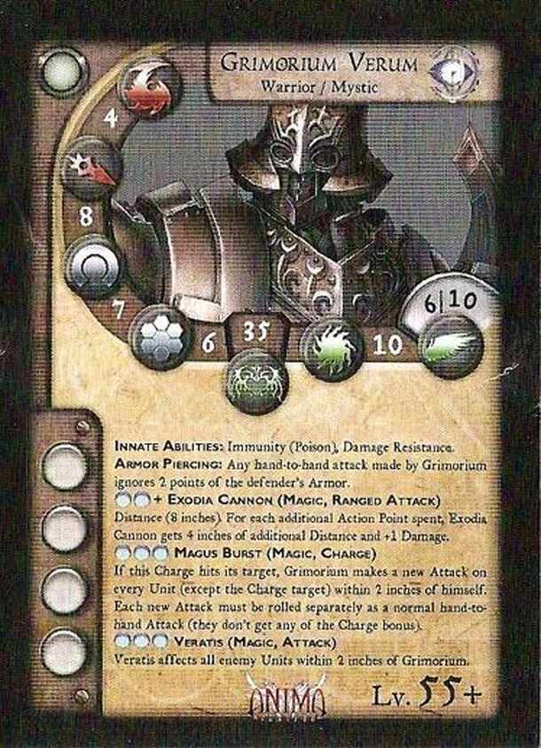 Grimorium is the heaviest Combat Gear model developed by Wissenchaft. Almost unstoppable, this Lost Logias weapon enters the battlefield to annihilate everything in his path. Neutral Wissenschaft Warrior/Mystic- Lv. 55+ At 4 | Dm 8 | Df 7 | Ar 6 | LP 35 | Re 10 | Mo 6/10 | AP Varies/4 Innate Abilities:Damage Resistance, Immunity (Poison). Armor Piercing:...