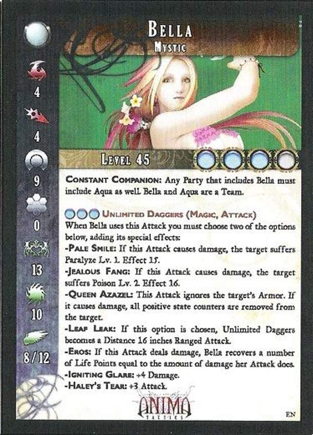 Other than her prodigious elemental powers and obsession with the procurement of supernatural artifacts not much is known about this mysterious young woman. One of the foremost mercenaries of Gaia she works for the highest bidder, only to disappear suddenly once the contract is completed. Neutral Wanderer Mystic - Lv. 45 At 4 | Dm 4 | Df 9 | Ar 0 | LP: 13...