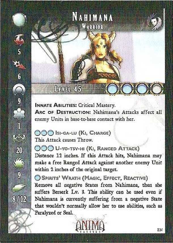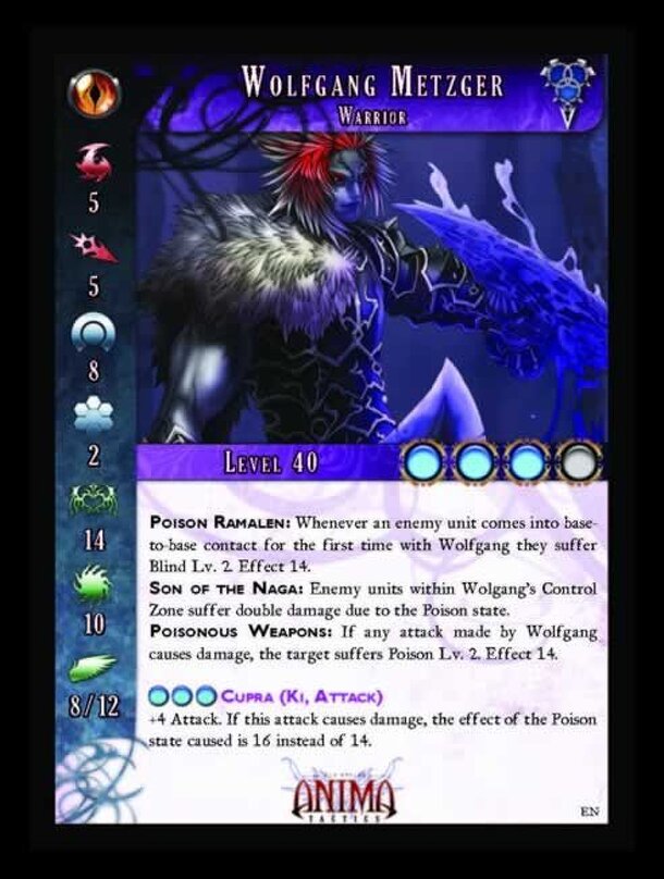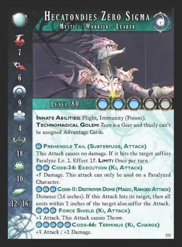 Neutral Wissenschaft Mystic Warrior Leader - Lv. 80 At 7 | Dm 6 | Df 9 | Ar 4 | LP: 18 | Re 10 | Mo 12/16 | AP 3/5 Innate Abilities: Flight, Immunity (Poison) Technomagical Golem: Zero is a Gear and thus can't be assigned Advantage Cards o - Prehensile Tail (Ki, Attack) This attack causes no damage. If it hits the target suffers Paralyze Lv. 1 effect 15....