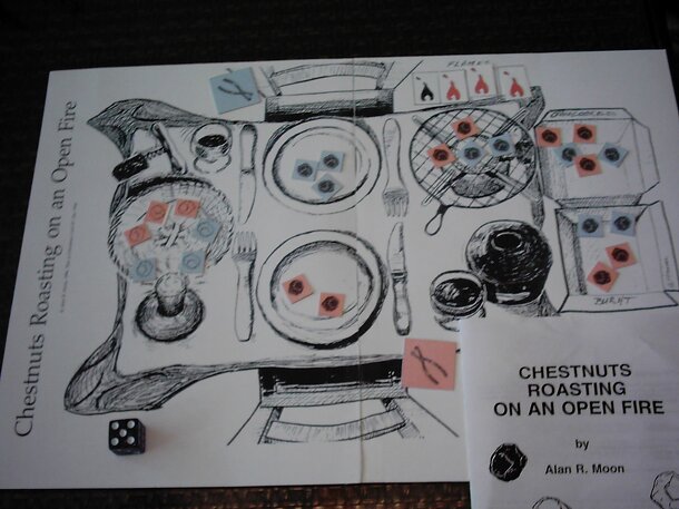 From the Introduction in the rules: "It is Christmas Eve. You and your partner are sitting at the table. A glorious basket with chestnuts is waiting for you. You bring a toast and sip from your delicate Sierra Vista Zinfandel 1990. Next you light the cooking fire, and wait until it's hot enough. Then both of you put the first chestnuts on the fire. Oh...