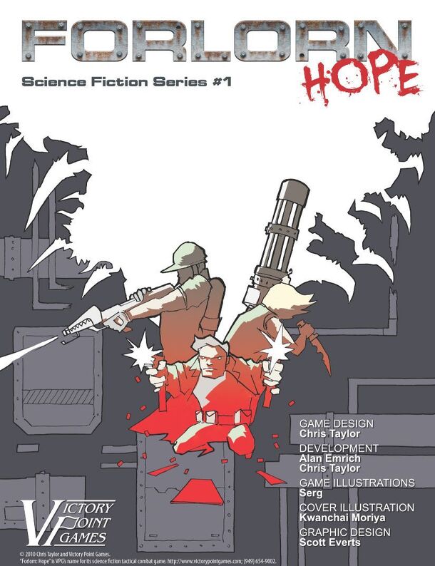 Forlorn is a game of tactical combat between a squad of human Space Marines and a nearly unlimited horde of vicious alien Xenos aboard the claustrophobic space station, Hope. The Marine player utilizes a limited number of Action Points to command the Forlorn Squad, hoping that luck and a timely rush of adrenaline will help them to complete their desparate...