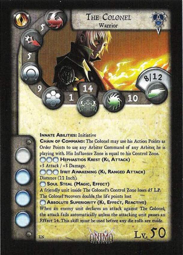 Even in Les Jaeger there is a person whose mere mention produces both veneration and terror, a man whose power and influence extends across the entire world. He is an enigma. Those who know his true name can be counted on the fingers of one hand. For the rest, he is simply The Colonel. Dark Azur Alliance Warrior - Lv. 50 At 5 | Dm 5 | Df 9 | Ar 1 | LP 14 |...