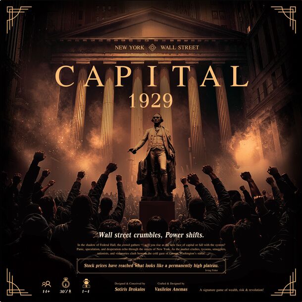In Capital: 1929 - Wall Street players find themselves in New York, only a few years before the onset of the Great Depression of 1929. Each player takes the role of executive characters, such as prominent personalities or ambitious entrepreneurs, who try to dominate over the U.S. Economy using the mechanisms of the game. The game unfolds over four Eras...