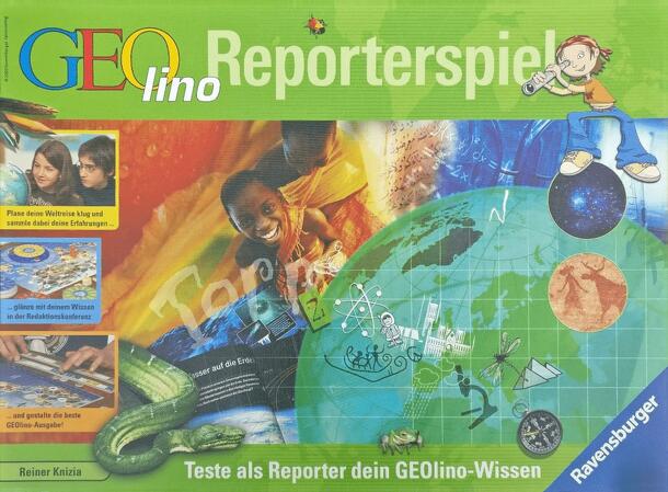 In Reporterspiel, players are journalists that travel around the world trying to collect interesting material and pictures for a new issue of GEOlino. On their turn, a player either moves the journalist and takes a round tile, takes a text tile, or takes an airline-ticket. 3 round or 3 white tiles on one subject result in a conference: A theme disk is laid...