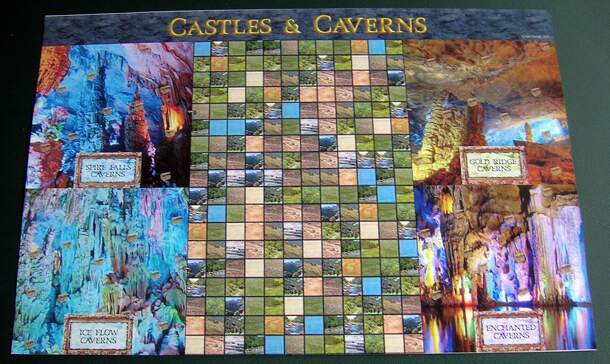 Castles & Caverns is a fantasy game in which players try to "build the most beautiful castle", but are faced with numerous challenges. The game features "magic and swordplay combined with bidding and strategy, and of course, lots of treasure!" The game board is marked with four cavern areas, "Spire Falls", "Gold Ridge", "Ice Flow", and "Enchanted." All...