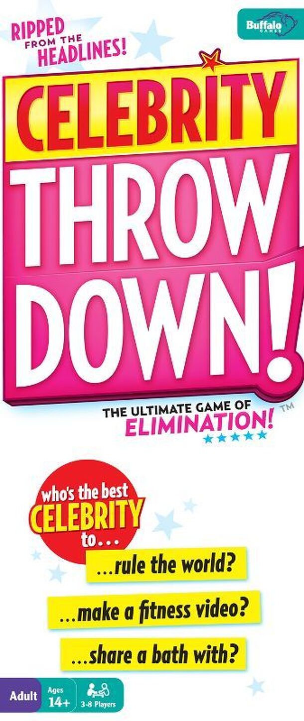 From the publisheräs website: Celebrity Throw Down! is the game where trendy stars, pop culture icons and historical legends face off in the ultimate game of elimination. All players select what they think are the best celebrities for an ordinary or outlandish, “ripped from the tabloid headlines” situation. If your celebrity is the one to survive the...