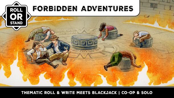 Roll or Stand: Forbidden Adventures is a cooperative and solo roll-and-write game for 1 to 100 players. Each turn you roll 2 dice and add the results to your previous rolls, aiming to get as close as possible to the target values without busting (going over), similar to Blackjack. Once you choose to stand, you extend lines in the active puzzle to work...