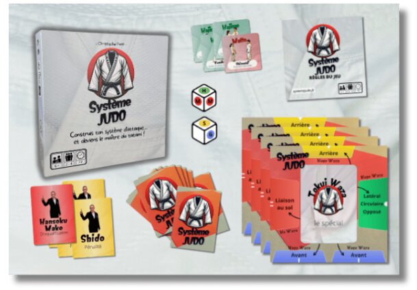 Système JUDO: A thematic game, simple to understand but rich in learning! Goal of the game Be the first to build a complete Judo attack system by starting with a Tokui Waza (favorite technique), then completing it with techniques in each direction! Gameplay Dive into the world of judo with Système JUDO! In this strategic and fun game, each player builds...
