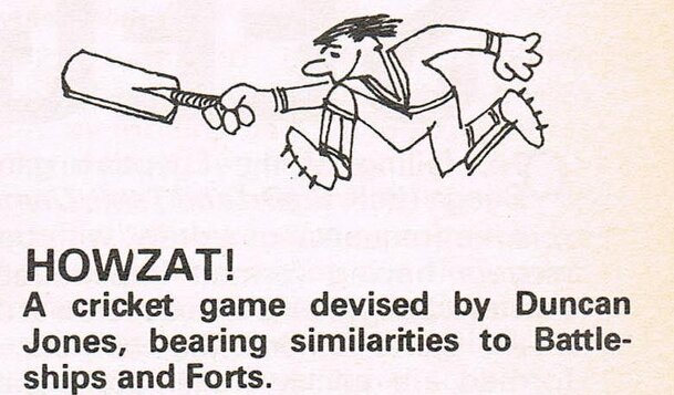 Each player draws an 11 x 10 grid. The columns are numbered and the rows lettered. In each of the ten columns the players distribute four 0's, three 1 's, two 2's, one 4, and an A for appeal in any order. The players then take it in turn to bowl an over. It is advisable for each player to record the outcome of his over on a spare grid. Object The player...