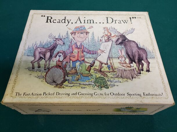 Description from the publisher: The Fast-Action Packed Drawing and Guessing Game for Outdoor Sporting Enthusiasts! "Ready, Aim...Draw!", is the zany fast-paced action game of sketching, drawing, doodling, guessing and yelling. Entertaining words and phrases from all outdoor sporting activities including fishing, hunting, camping, boating, first aid...