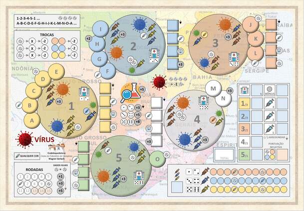 A virus is causing health problems for the Brazilian population, and the government has decided to take action to minimize its effects. The decision was made to focus on research, drug production, and vaccination. In this 15-round Roll and Write game, players must roll four dice each round and choose two to mark on the game sheet. They aim not only to...