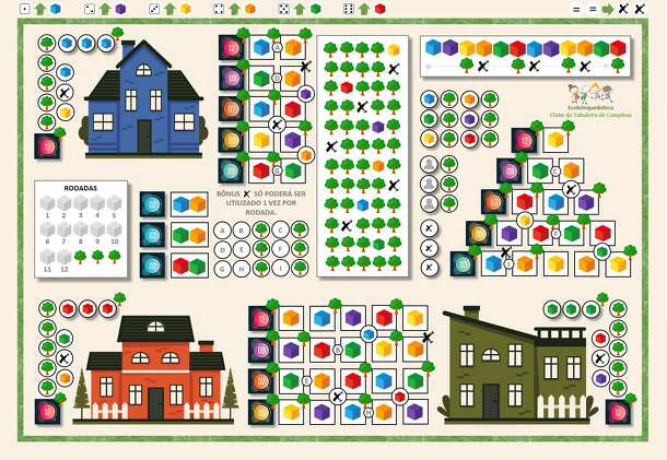 In this "Roll and Write" Game, in 12 rounds, players will plant Trees and to do so they must roll 4 Dice with colored faces and make marks in different locations on their sheet. For each Tree marked or earned with Bonuses present on the Sheet, your "Planted Tree Control" will advance. Active player rolls 4 dice and chooses 2 Other players choose 1 dice At...