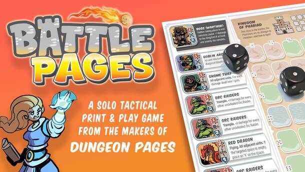 In Battle Pages you will protect your kingdom from a wave of enemies, using runs of dice to mine gems and tactically place units throughout the map. If you can survive 6 waves and the boss, you win! Battle Pages is a roll and write dice game that features tactical dice placement, a little bit of press your luck, and strategic map building. This expands the...