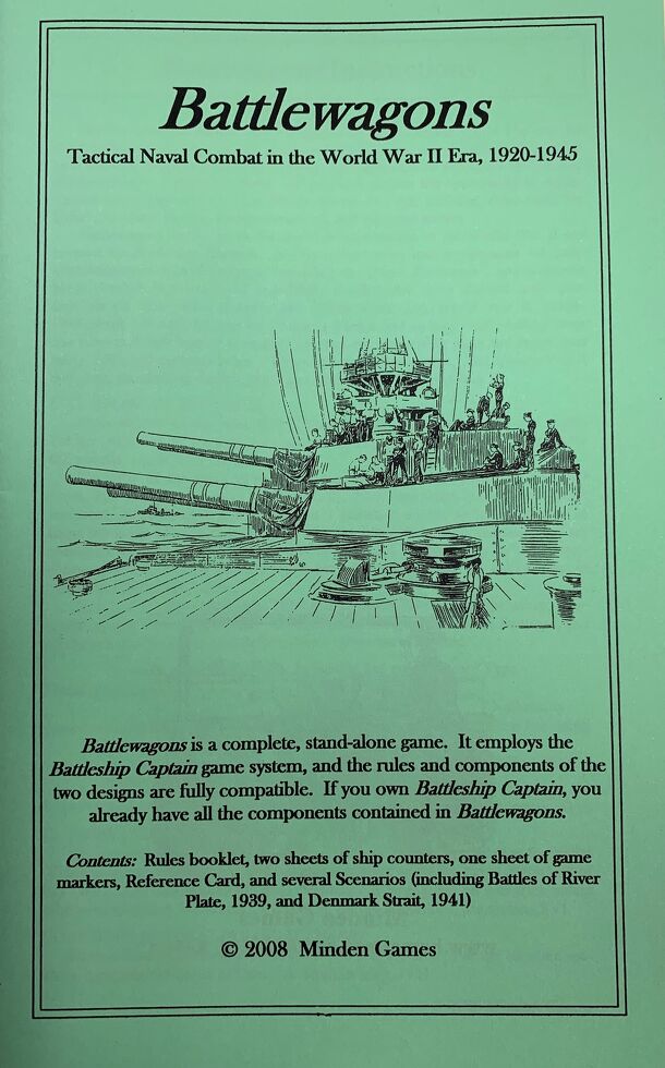 Battlewagons is a complete standalone game. It employs the Battleship Captain game system of swift naval combat, and the rules and components of the two designs are fully compatible. If you own Battleship Captain, you already have all the components contained in Battlewagons. Scenarios include: Denmark Strait, May 1941 Death of the Bismarck, May 1941...