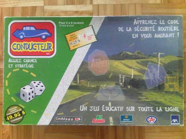 Translation from back of the box: The board game CONDUCTEUR aims to familiarize the players with the road safety code and the laws that govern it. The situations presented correspond to the reality that drivers and future drivers will face. The goal of each player is: get the least possible offense due to his negligence or imprudence for they result in the...