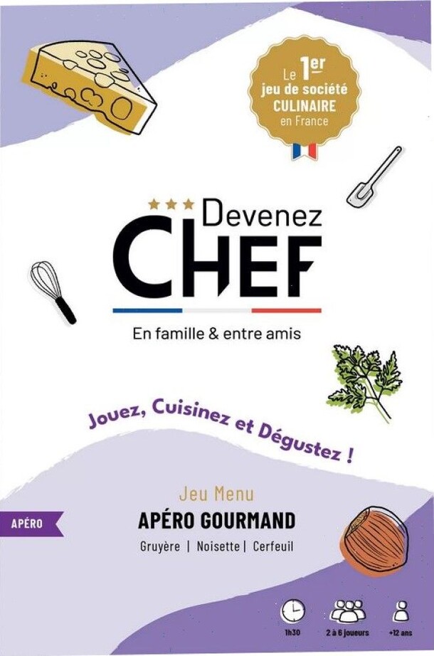 Cook with family or friends a mystery menu to discover throughout the game. At the end of the game, enjoy your dinner aperitif with 5 appetizer bites. Difficulty level: 2 out of 3 – Daily chef level Main ingredients: Gruyere, hazelnut, chervil Other ingredients: old-fashioned mustard, olives, mozzarella di bufala, mascarpone, parmesan, lemon, cherry...