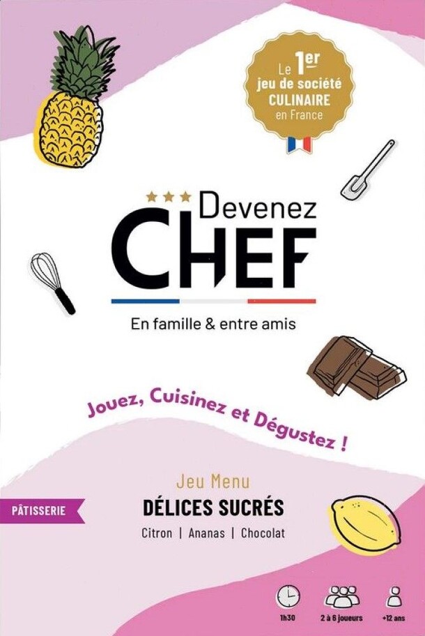 Cook with family or friends a mystery menu to discover throughout the game. At the end of the game, taste your chef's feat: 3 gourmet pastries. Difficulty level: 2 out of 3 – Daily chef level Main ingredients: pineapple, lemon, chocolate Other ingredients: Breton crepes, lavender honey, strawberries, kiwi, soluble coffee, oranges, bananas, cocoa and...