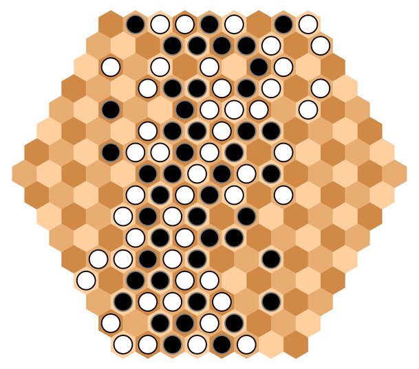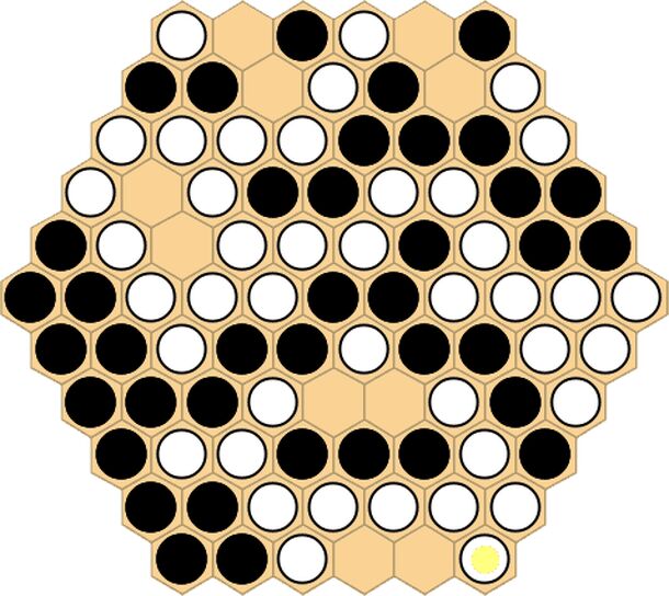 A 2004 abstract game designed by Bill Taylor and João Pedro Neto, inspired by Christian Freeling's Havannah. The game is played on an hexhex board with alternating sizes 8/9 and where no edge hex has special status, i.e., corner hexes are not treated differently than any other hexes at the edge. That is achieved by modelling the board perimeter as a circle...