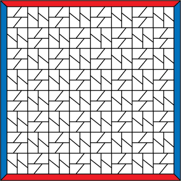 Tartan is a connection game for two players: Black and White. It is played on the spaces (squares) of an initially empty square grid (board). The top and bottom edges of the board are colored black; the left and right edges are colored white. Squares at the intersection of even columns and odd rows are colored black; squares at the intersection of odd...