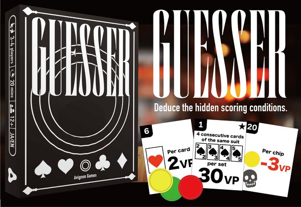 A competitive game for 3 to 4 players. Each player holds two cards with different condition cards. Use your turn actions to collect number cards and chips that meet the condition cards! Action List(On your turn, you may perform the following actions twice.) Frip 1 condition card and read it. Pay the cost to take 1 numbered card from the play area. Pay the...