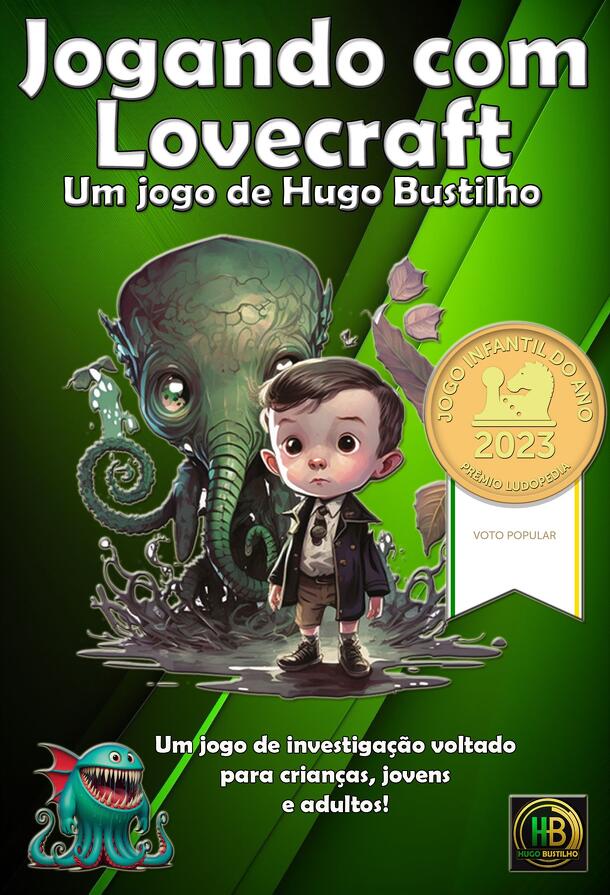 Playing with Lovecraft is a Lovecraftian Card Game to children 6+ years old. Objective Explore the main deck to capture Elder Ones, Deep Ones, Ghouls and find Gates to make points. Gameplay The game is played in turns. Every turn, players explore a main deck opening a card (gate, elder one or monster) and each player choose a card with a number (force...