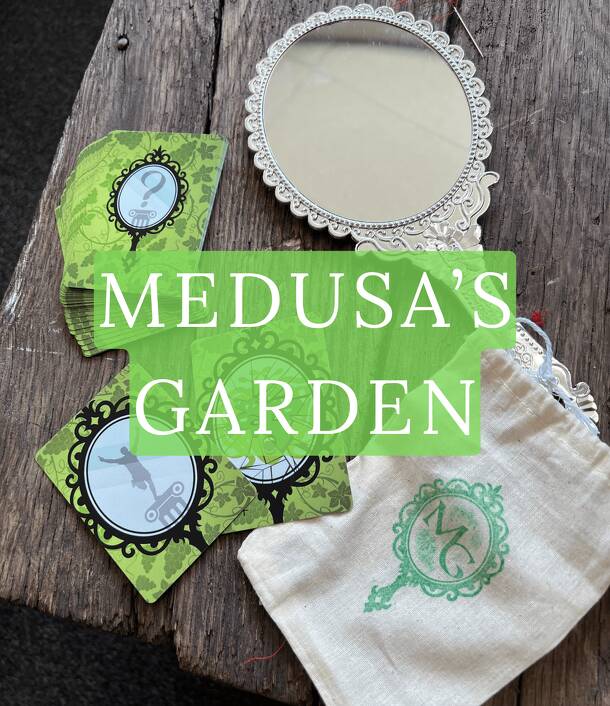 Medusa hides amongst a garden of enthralled statues...in quick succession, she strikes, shattering them. Can Perseus identify Medusa in a mirror before it's too late? In this quick and rowdy party game, the Perseus player searches for the Medusa player using a real mirror. Only Medusa can move and touch her statues, tagging them one at a time to eliminate...