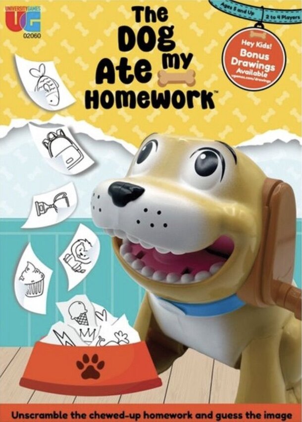 Your dog LOVES to eat your HOMEWORK! Pick a Homework Sheet, put it in the dog’s mouth, turn his ear, then collect the shreds out of his rear end. Unscramble the shredded Homework and correctly guess the image. Turn it in before the deadline to win! Every correct guess wins a Doggie Treat. The player with the most Doggie Treats after three rounds wins the...