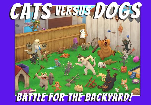 Cats versus Dogs is played on a large scale board of hexagonal tiles. Play and movement is controlled by a combination of dice, Action Cards, Resource Cards, and cat/dog trivia challenges. The focus of the game is to capture/claim an amount of territory before your opponent does. The thematics involve two factions: the Dogs and the Cats. players select a...
