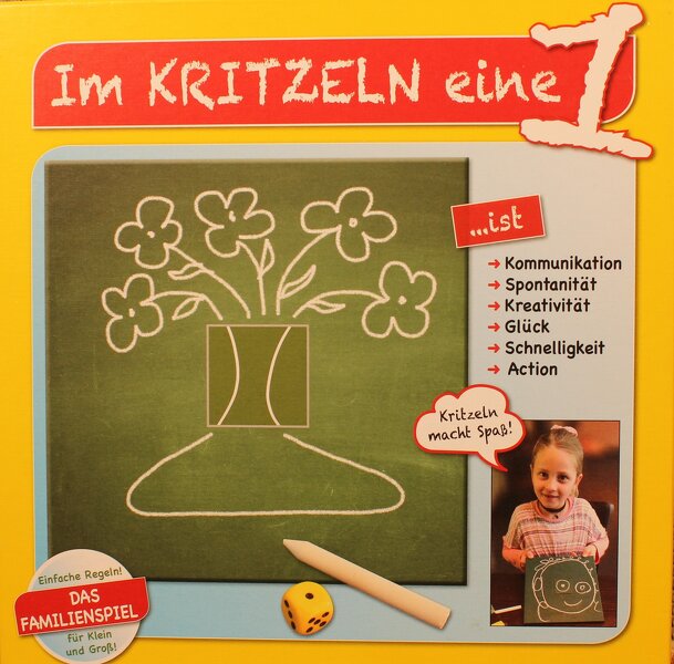 This drawing and guessing game, essentially identical to Pictionary, is for 2-4 teams of up to 5 players. Players move a pencil figurine across a board with colored spaces, each representing a category: 1) Arts, Sports & Entertainment, 2) Geography & Natural Sciences, 3) Verbs, 4) Home & Food, and 5) Anything Goes. In the first round, all teams...