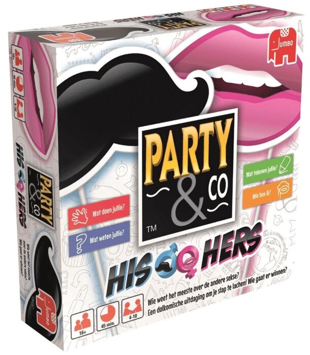 Party & Co where the boys compete against the girls! An ideal game for an unforgettable evening full of fun! Who is going to win? The ladies or the gentlemen? The boys or the girls? Go head to head with Party & Co His & Hers. 600 new, fun assignments and questions from the four classic categories: What do you know? What do you do? What do you draw? and Who...