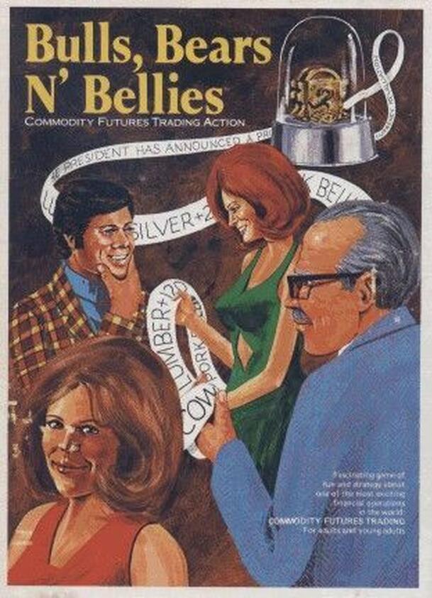 This is a bookshelf-style game of commodity futures trading. The authors describe it thusly: "The game is devised to be fun, educational, and fast paced. It is developed in such a way that the uninitiated trader who knows nothing about the factors that affect prices of commodity futures contracts can learn, in a very basic way, about these factors by...