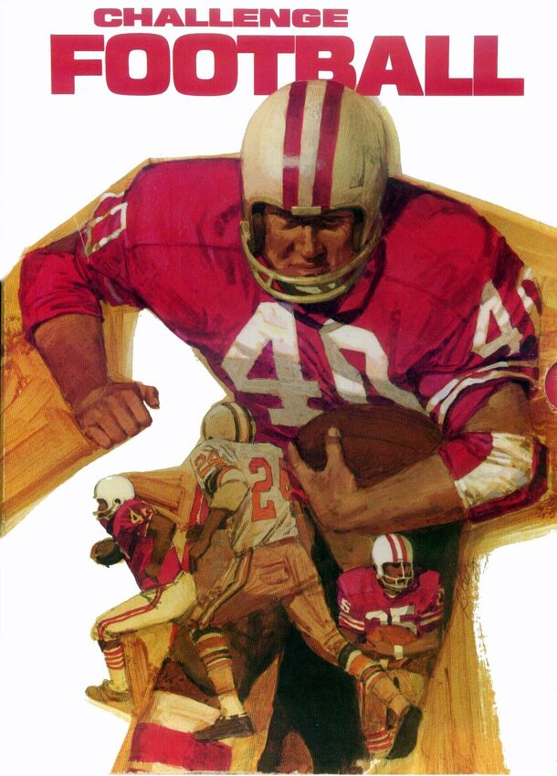 In Challenge Football players are taking the role of coaches in an "American" Football game. As coaches, each is deciding what plays to run in order to win the game. Plays commences with the selection of a play card by the defensive player. He/she installs a cover over this card such that the offensive player can only see the players on the line of...