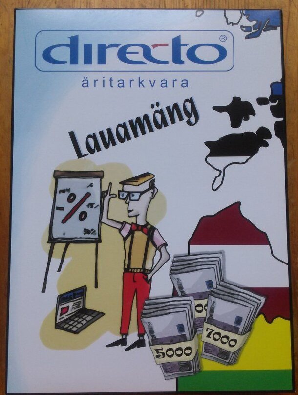 Promotional game for Estonian Business software company Directo. There are piece of map with Finland and Baltic States on the board. Each player has 6 bidding cards in hand: 4 cards with destination cities and two special cards: "Any city" allows You to move to any city what is not destination for any other player this round. and "Trouble" moves the...