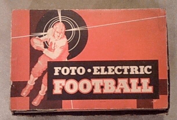 (Box description) Be the Coach or Quarterback of your own pro football team. You call the plays, you make the decisions...and see the action on the Play Viewer. Each play reflects gain or loss stats of an actual football performance. In every play, the rules of real football apply. Release History: 1936 - Scientific Football 1941 - Foto-Electric Football...