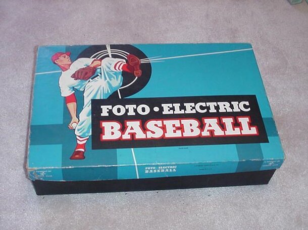 Here is the ultimate in Realism for everyone old enough to know Baseball. All the action and suspense of the Real Game! Definitely not a mechanical toy. Special Team Slides dramatize the Duel between Pitcher and Batter. 30 colorful Players equal the very best, in Major League Performance. Illuminated Play-Viewer shows the Play at every Base . . . Hits...
