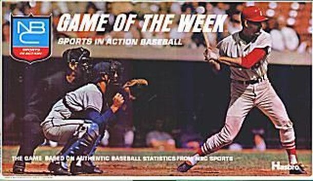 NBC Game of the Week Baseball is a card-driven game using a simple chart, spinners, and a gridded gameboard / playing field to determine the result of each play. Each team selects a batting line-up from the two identical teams of individually-rated players (".210 medium left," ".300 heavy right," etc). The team in the field positions its players on the...