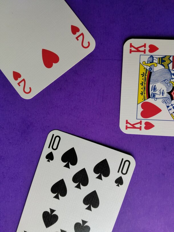 This game is played with a standard deck of cards stripped down to AKQJT987 plus one Joker. Eleven tricks are played, hence one player will win either the middling number of tricks, or, if two win the same number, a unique number of tricks. That player is designated Hamlet. A new trump suit and a scoring multiplier (whether it is more desirable "to be or...